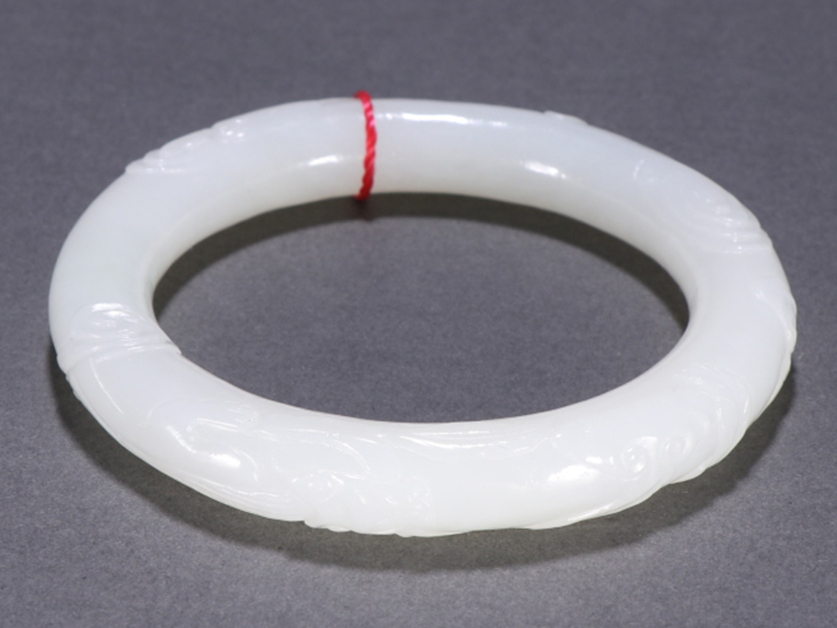 - ▽鴻▽ 清朝時代 和田玉 白玉彫 魑龍紋腕輪 時代物 中国古美術 骨董品