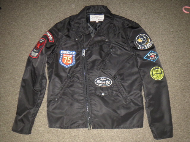 > 未使用 AVIREX アヴィレックス MOTORCYCLE ナイロン ダブルライダースジャケット L