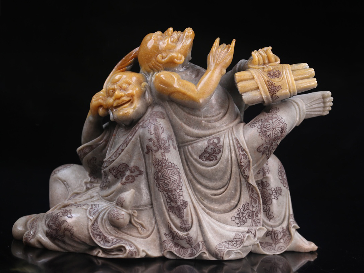 - ▽鴻▽清朝時代 寿山石彫 羅漢置物 箱付 時代物 中国古美術 骨董品