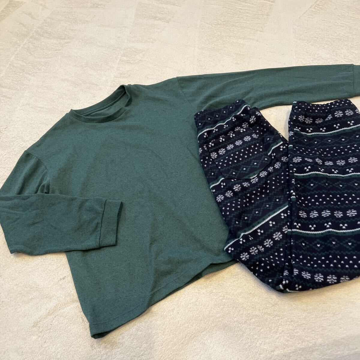 > 【UNIQLOユニクロ】グリーン フリース パジャマ 上下セット ルームウェア150