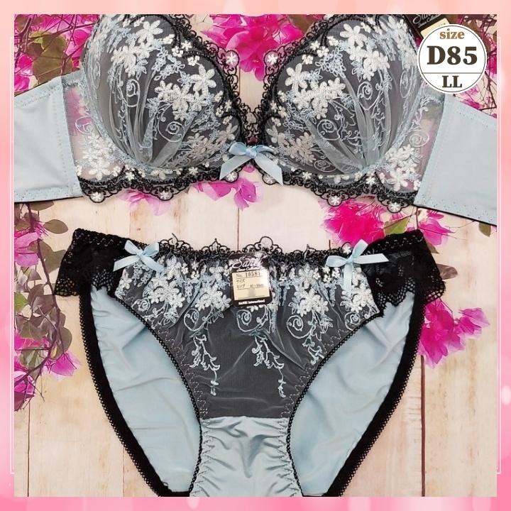 > Zd8510◆新品 ブラショーツセット【D85/LL】下着 ランジェリー 脇高 谷間メイク 美胸 フラワーブーケ 緑系