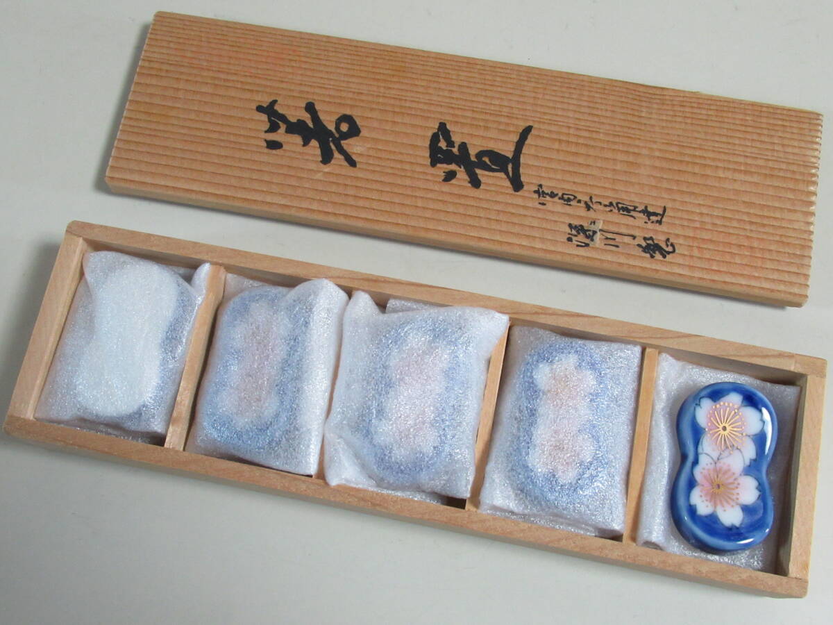 - R7 10★深川製磁 桜花紋 箸置き 5客セット 木製共箱付