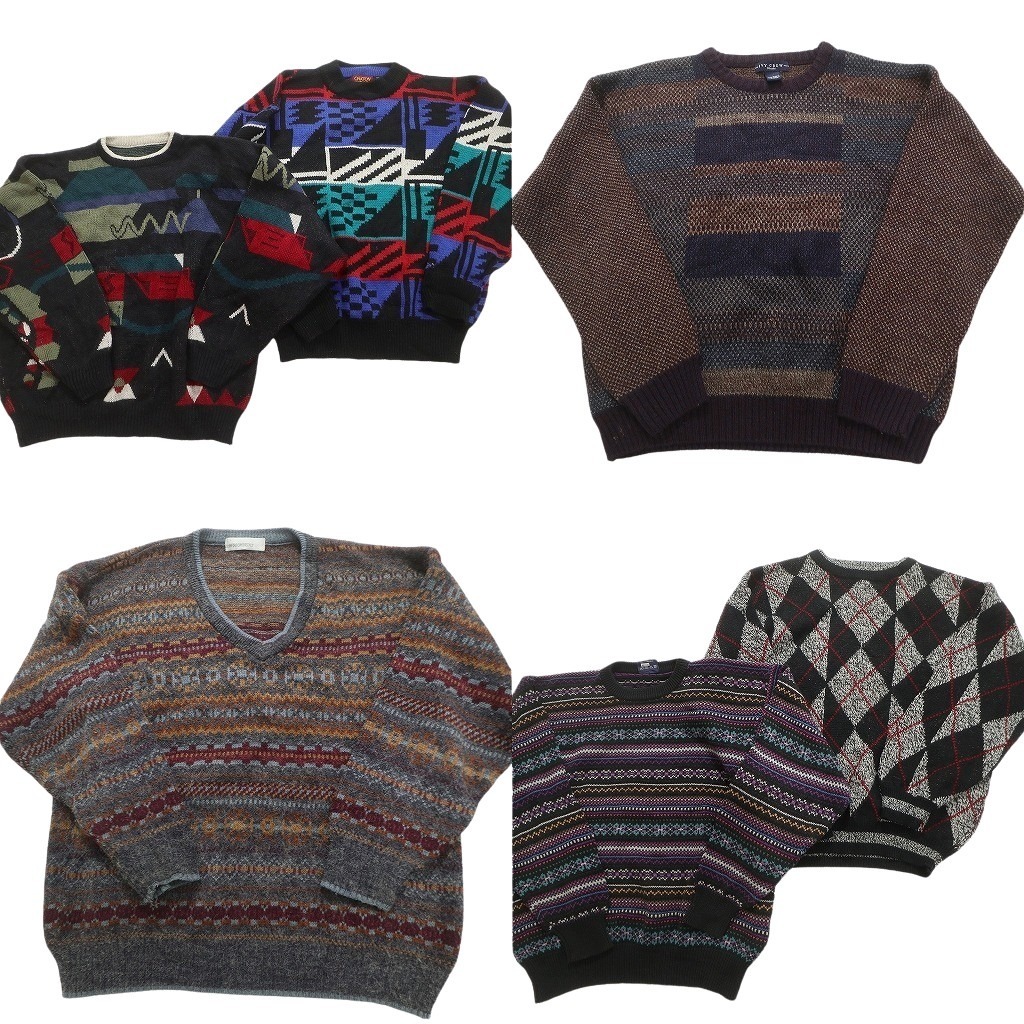 > 古着卸 まとめ売り 総柄ニット セーター 6枚セット (メンズ L ) マルチカラー フェアアイル柄 アーガイル柄 Vネック 中古 古着 NC3433