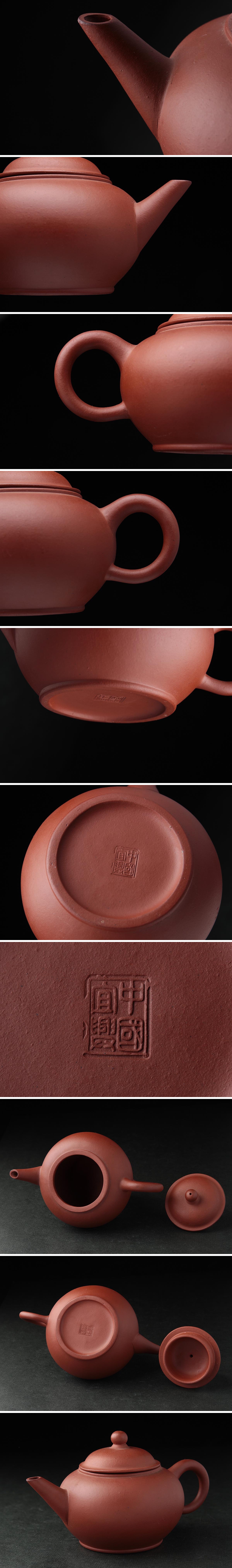 > ZN253 中国宜興 唐物 紫砂 朱泥 砲口 急須 幅11.7cm・宜興紫砂壺 煎茶道具 茶器 中国古陶磁 中国古玩 古美術