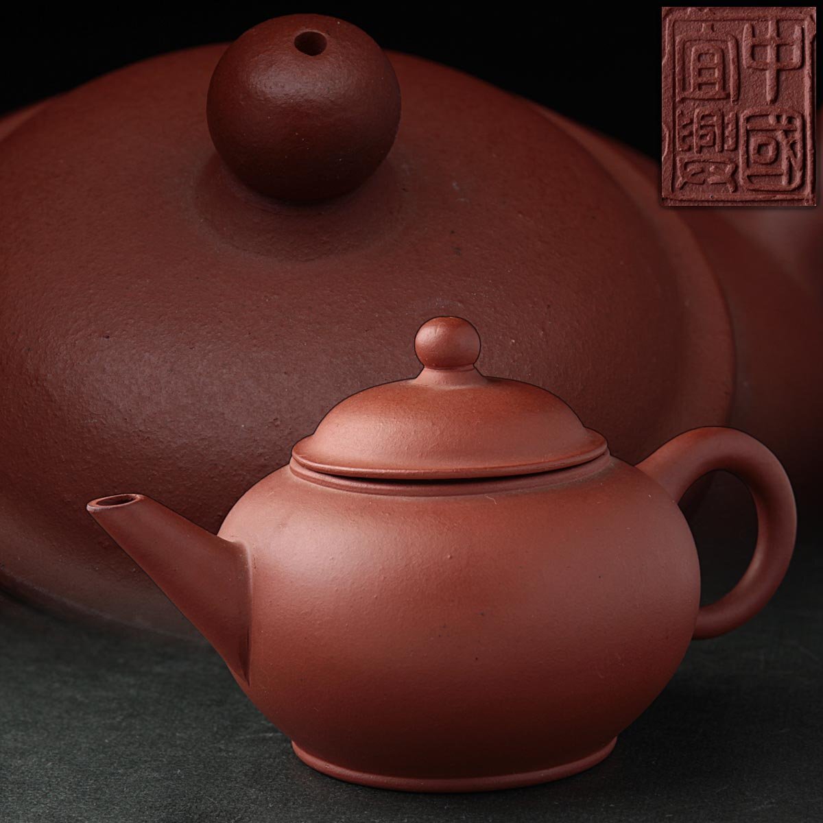 - ZN253 中国宜興 唐物 紫砂 朱泥 砲口 急須 幅11.7cm・宜興紫砂壺 煎茶道具 茶器 中国古陶磁 中国古玩 古美術