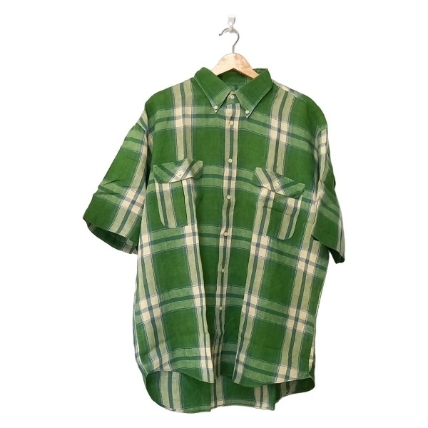 > レコパン LesCopains 半袖シャツ サイズVI - グリーン×ライトイエロー×ネイビー メンズ 麻/チェック柄 美品 トップス