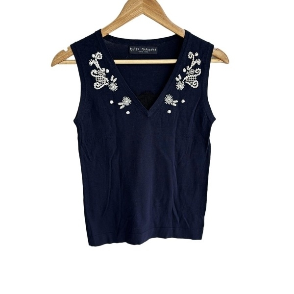 > ケイタマルヤマ KEITA MARUYAMA ベスト サイズ1 S - ネイビー×黒 レディース シルク/ビーズ/レース/刺繍 トップス