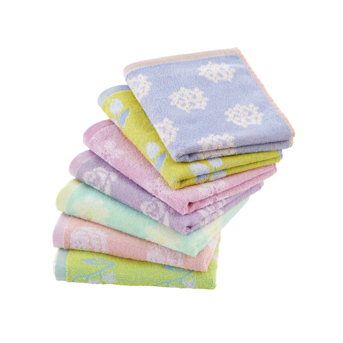 > Kosugizen フェイスタオル 1週間のジャガード フラワー 7色(7柄)各1枚入 34×80cm 北欧風モチーフ 1週間まいち使い分け 7枚