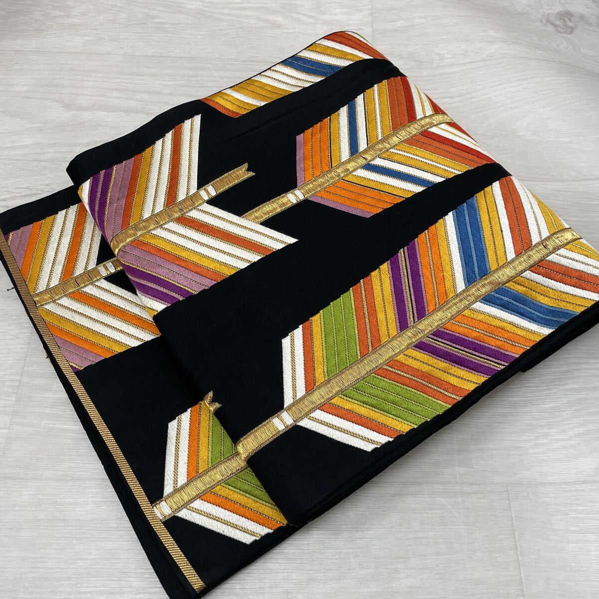 - 袋帯 唐織 黒地に矢羽 正絹 着物 正絹 着物 W-4970