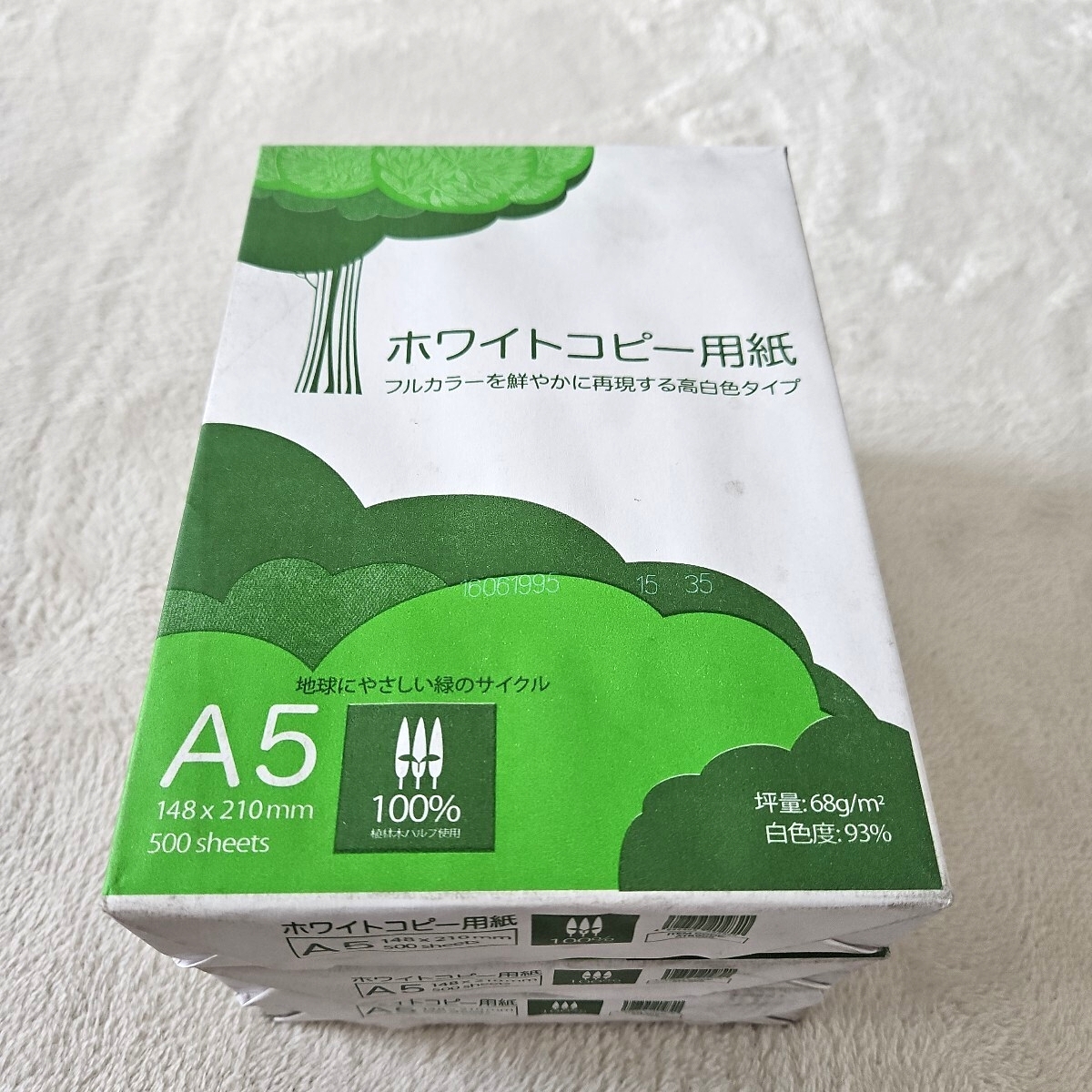 - 【新品未使用】A5 ホワイトコピー用紙 白色度93% 500枚×3セット(1500枚) まとめ売り 外紙袋汚れかなりあります