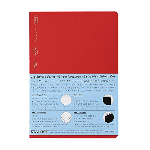 - ニトムズ STALOGY ノート 1/2イヤーノート A5 ドット方眼 レッド S4152