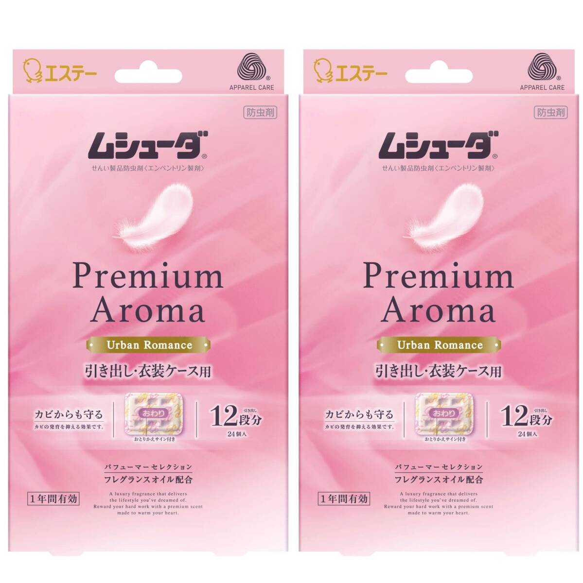 - ムシューダ プレミアムアロマ [まとめ買い] 衣類用 防虫剤 香り付き 防カビ剤配合 引き出し 衣装ケース用 アーバンロマンス 24個入×2個