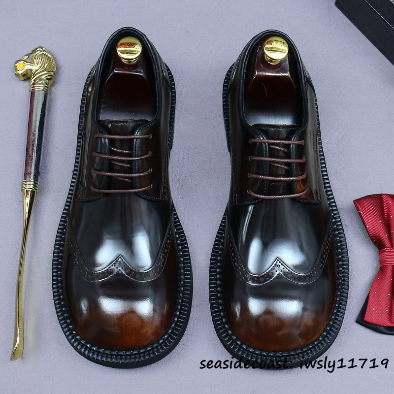 - 最上級■本革 メンズ ビジネスシューズ 職人手塗り上げ 彫り 牛革 レザーシューズ 厚底 身長アップ 革靴 冠婚葬祭 紳士靴 ブラウン 26.5cm