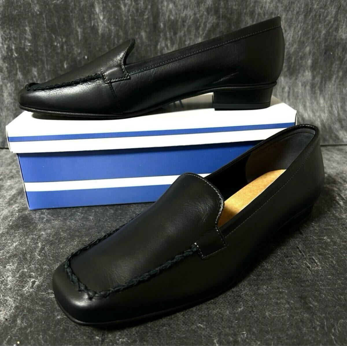 - 【未使用/大きいサイズ】 ¥20,900- blanc/bleu ブランブルー #8284 ローファー スクエアトゥ 本革 ブラック レディース size25.5 *2A