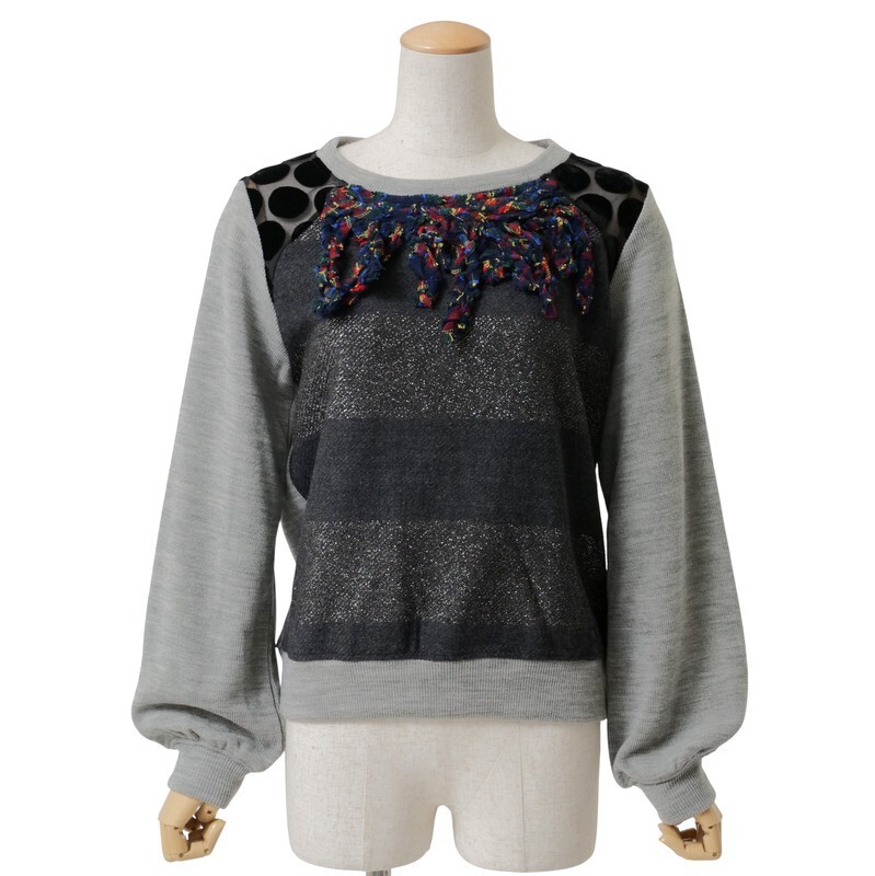> GR4945□未使用 ヒスイ ヒロコ イトウ/HISUI HIROKO ITO 異素材切替 長袖 クルーネック セーター ニットプルオーバー サイズM 定価33,000円