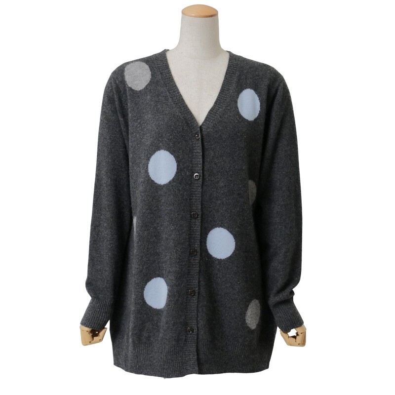 - MH5221□ルビラ/Levilla 総カシミヤ ドット柄 水玉柄 長袖 Vネック ニットカーディガン サイズ3 グレー系
