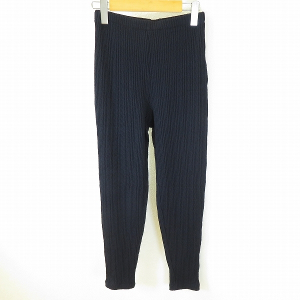 - #a レリアン Leilian パンツ ニット 9 紺 無地 リブ編み 日本製 レディース [962973] k01