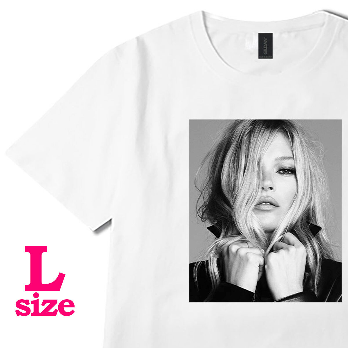 - ケイト モス Kate Moss モノクロ フォトプリント Tシャツ キレイめ カジュアル 半袖 6.0oz コットン100% ユニセックス L