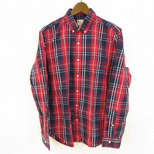 - #anc ジェイクルー J.CREW 長袖シャツ M 赤 紺 白 チェック オックスフォード ボタンダウン タグ付き メンズ [931909] k01