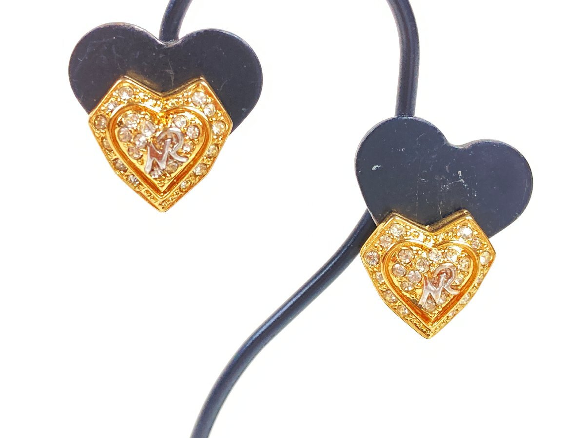 - ニナリッチ NINA RICCI ハート NRロゴ ラインストーン イヤリング ゴールドカラー×シルバーカラー YAS-11852