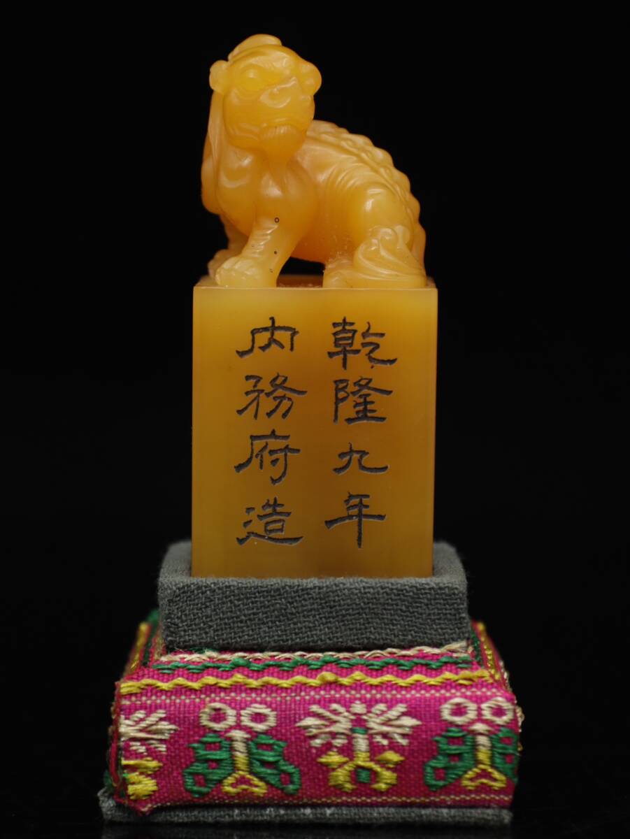 > ◆珍蔵◆中国古美術 清時代 乾隆九年 古寿山石 田黄石彫り古獸 印章 精品 箱付 細密細工造 置物 擺件 古賞物 骨董品 時代物 A17