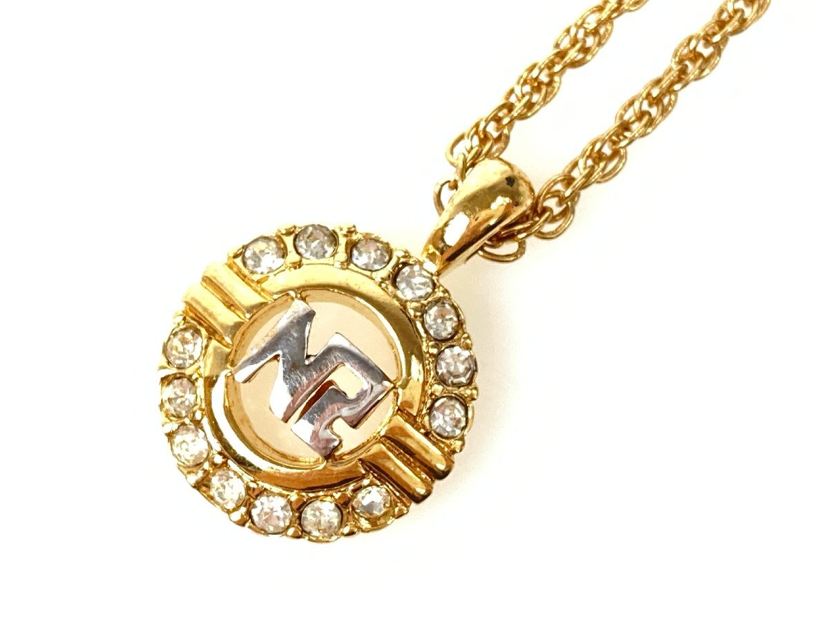 > ニナリッチ NINA RICCI NRロゴ サークル ラインストーン ネックレス ゴールドカラー×シルバーカラー YAS-11378