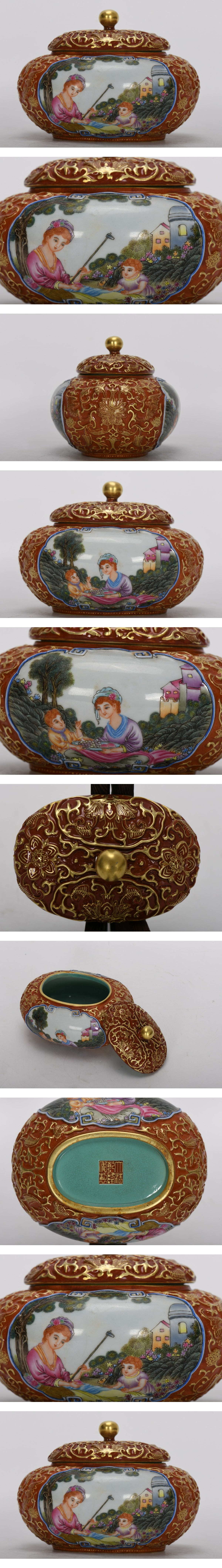 > ◆珍蔵◆中国古美術 清乾隆年製款 琺瑯彩 描金 古陶磁 西洋人物盖罐 細密細工造 置物 擺件 古賞物 骨董品 時代物 A02