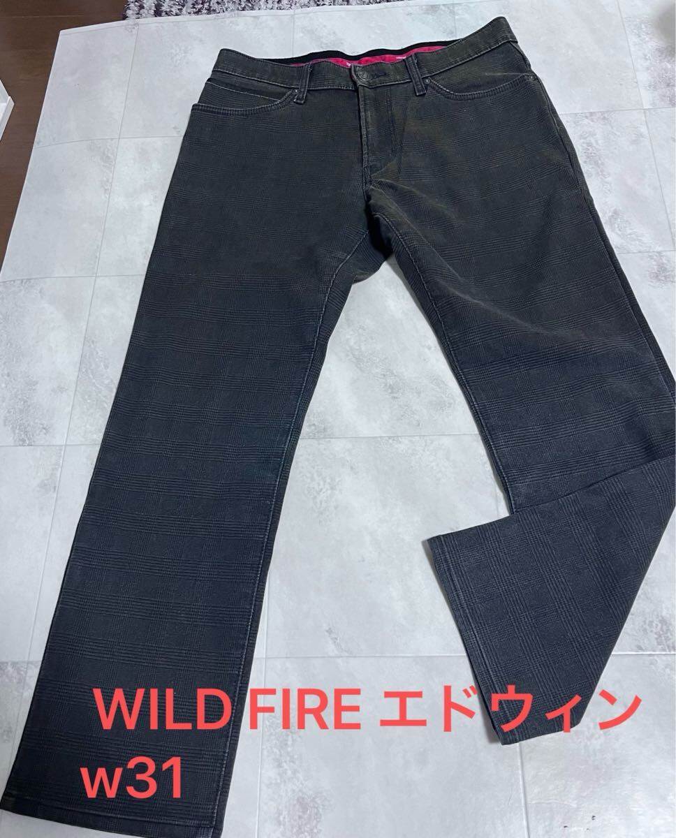 > EDWIN エドウィン TGF503 WILD FIRE 秋冬 ストレッチ 防風 裏起毛 千鳥格子 グレンチェック パンツ 31インチ