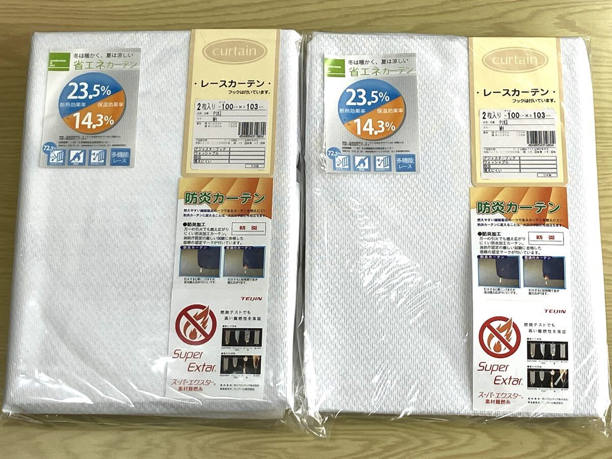 > 100x103cm 2枚入 【2セット】未使用 レースカーテン 省エネ 防炎 見えにくい 数量限定①