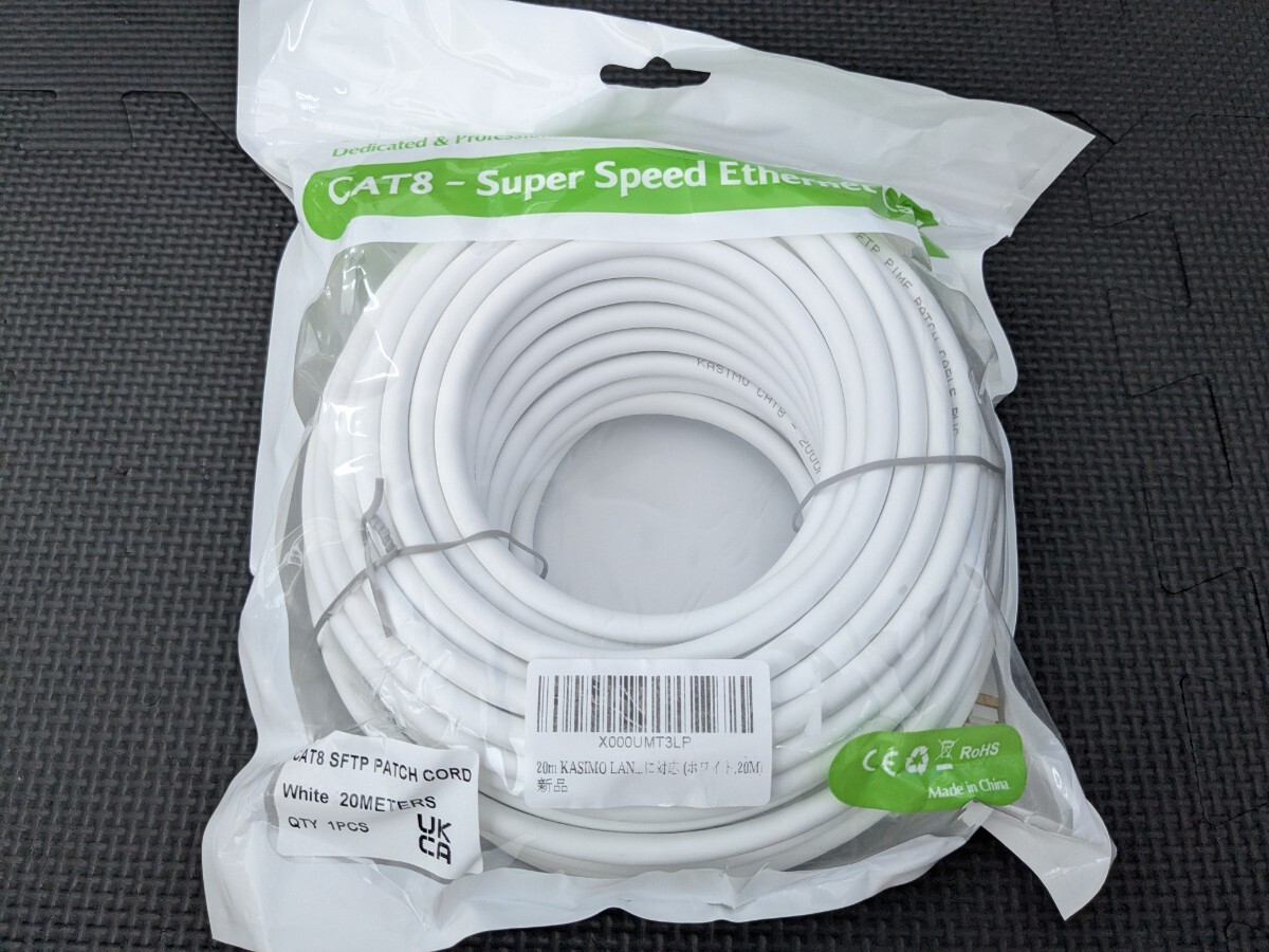> 0710u1808 KASIMO LANケーブル CAT8 カテゴリー8 最大40Gbps 2000MHz CAT8準拠 26AWG RJ45 SFTP 二重シールド ホワイト 20M
