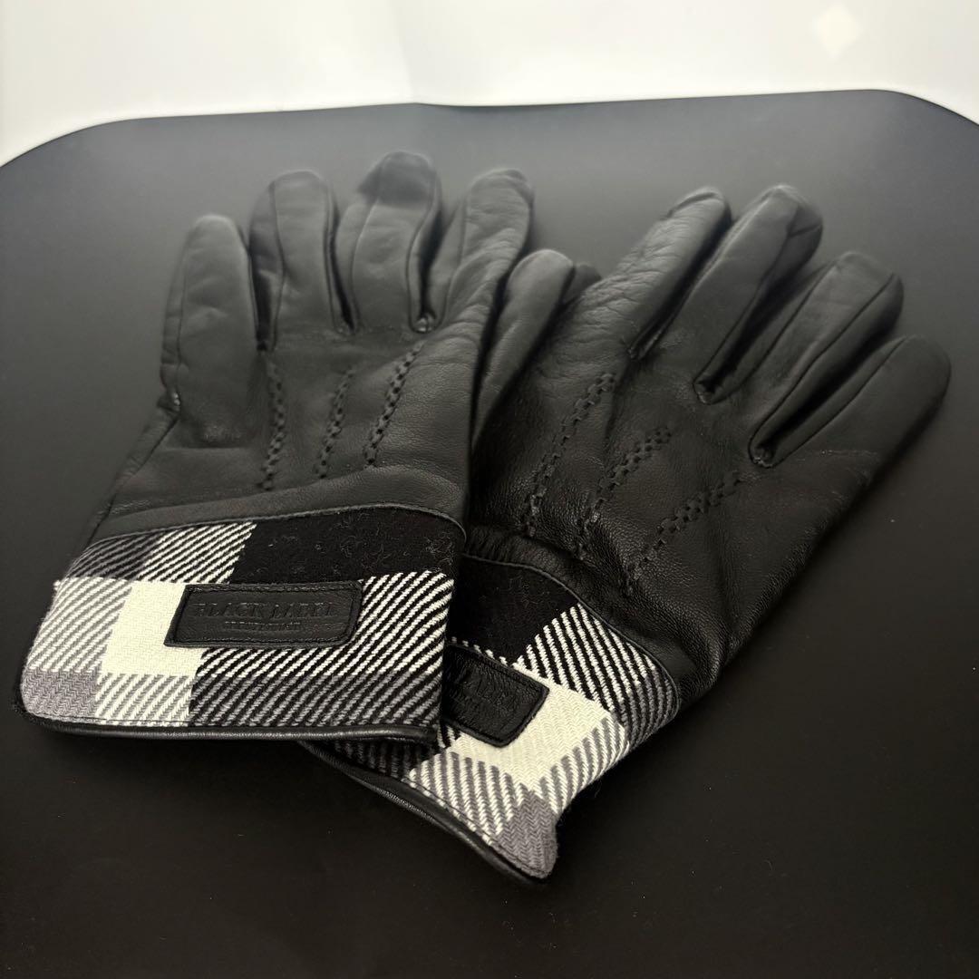 > 美品 BLACK LABEL CRESTBRIDGE ブラックレーベルクレストブリッジ レザー チェック 手袋 グローブ カシミヤ ウール 黒 ブラック