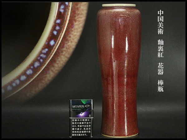 - 【銀閣】中国美術 釉裏紅 花器 棒瓶 高31.5cm 旧家蔵出 送料無料(YC222)
