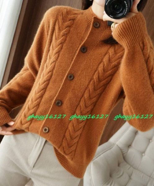 - Mふんわり暖かカシミヤ90%★大人上品ケーブル編みニットカーディガン キャメル M