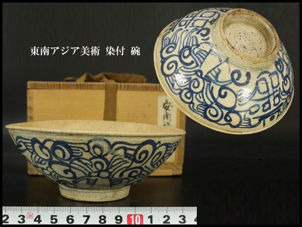 - 【銀閣】東南アジア美術 染付 碗 φ15cm 旧家蔵出 送料無料(YB791)