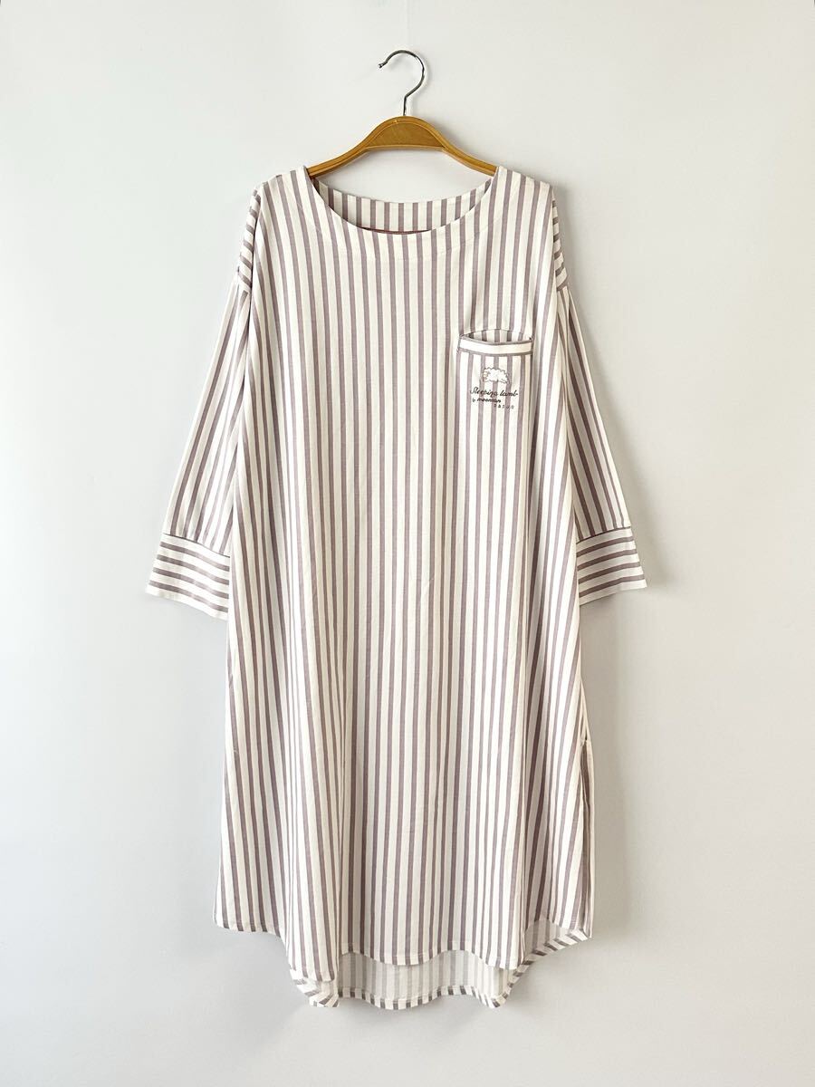- 未使用 ナルエー ひつじ刺繍 ストライプ柄 ルームワンピース ルームウェア Moon Tan Narue
