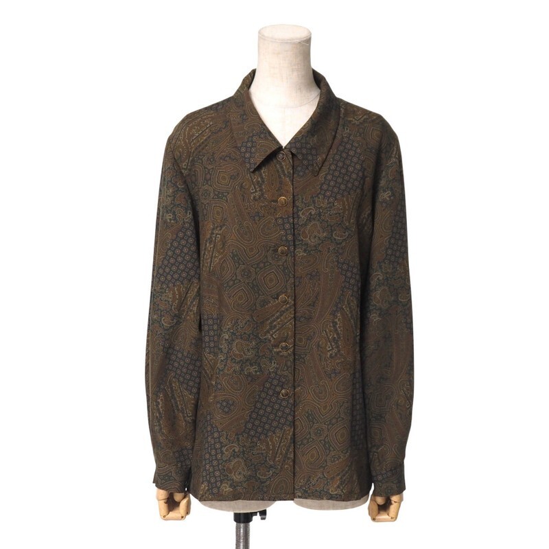 - GS3527★Burberrys バーバリー ヴィンテージ ペイズリー柄 ウール100% くるみボタン 長袖ブラウス シャツ カーキブラウン サイズ15