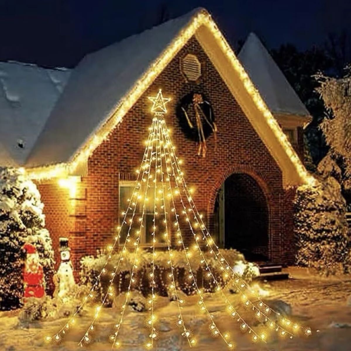 - 【新品】LED イルミネーション ライト ドレープライト ソーラー 防水 星型 350球 電飾 飾り 屋外 クリスマス ゴールド イエロー