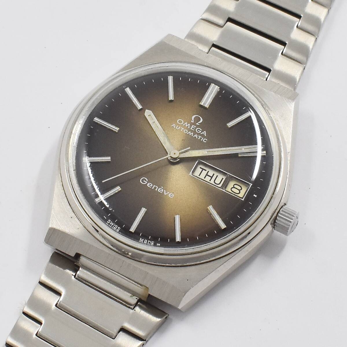 - 【中古/稼動品】 オメガ OMEGA ジュネーブ GENEVE グラデーションダイヤル 1982年頃 自動巻 デイデイト ティソケース ヴィンテージ