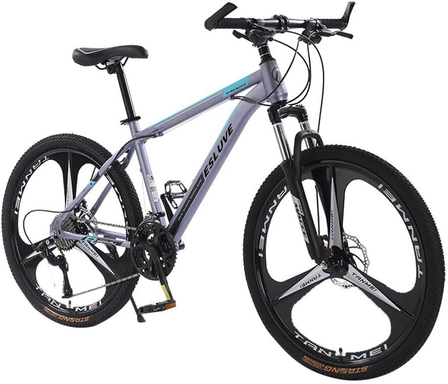 - グレー色 マウンテンバイク 26インチ 21段変速 MTB 自転車 ディスクブレーキ クロスバイク 泥よけ、空気入れ、ワイヤ錠付き