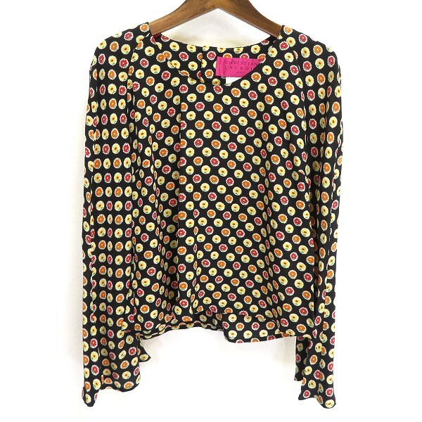 > #a クリスチャンラクロワ Christian Lacroix シャツ ブラウス 36 黒 マルチ 花柄 シルク 絹 100% フランス製 レディース [909410] k01