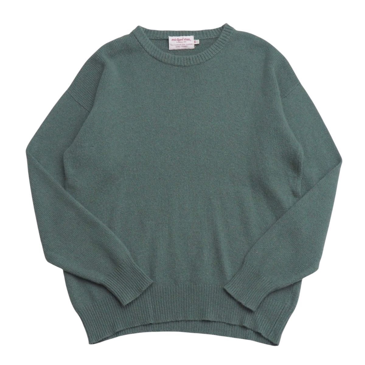 - TI7448▽英国製 マイケルロス michael ross メンズ44 総カシミア クルーネック ウールニット セーター 総柄 グリーン系