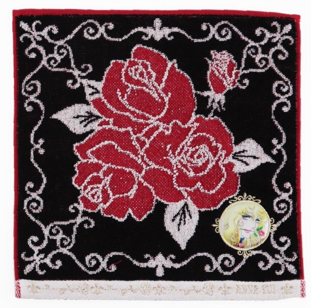 - 限定完売品アナスイ【ベルサイユのバラ】ANNA SUI ×ベルばらコラボ オスカル様アップリケ タオル ハンカチ(25cm角)赤黒 新品タグ付