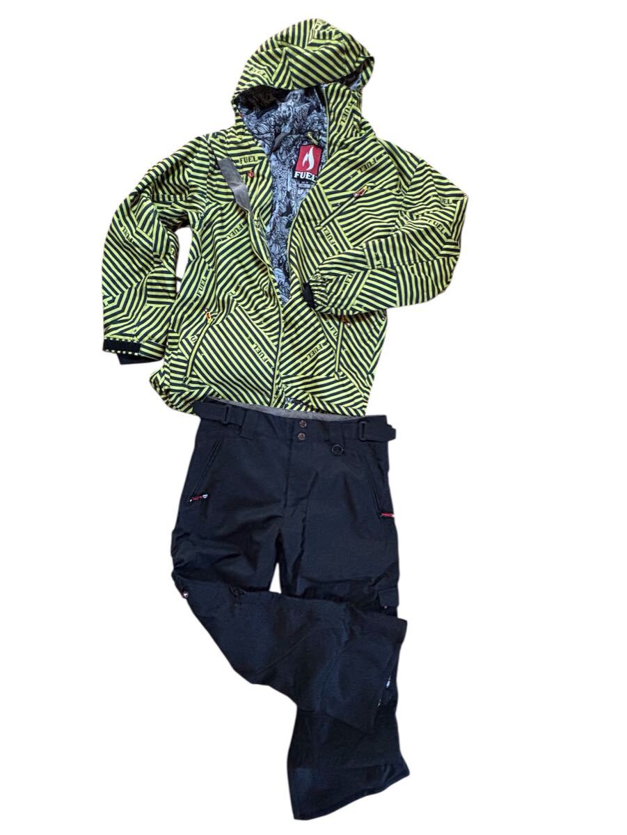 - FUEL フューエル イエロー ブラック スキー スノーボード ジャケット ウェア パンツ 上下セット 美品 一度のみ使用 Lサイズ D