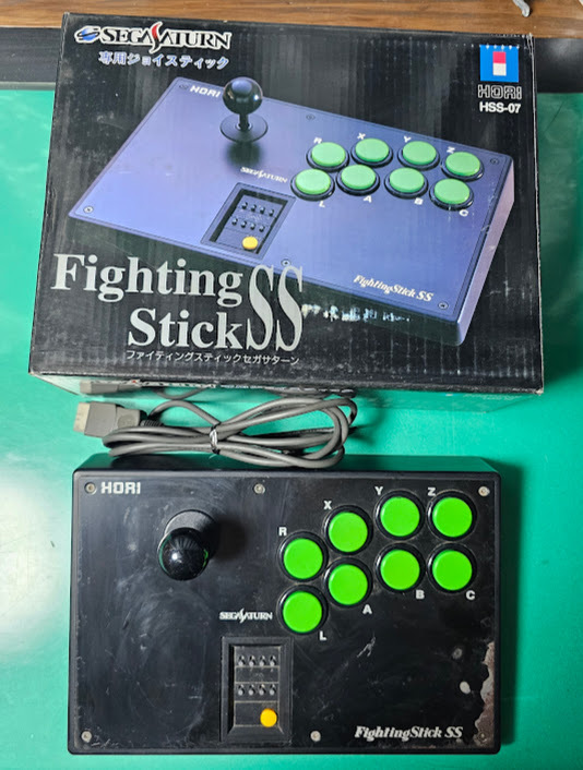 > SS HORI/ホリ電機 ファイティングスティック セガサターン HSS-07 Fighting Stick SEGA SATURN 動作確認済 箱付き 現状品 当時物