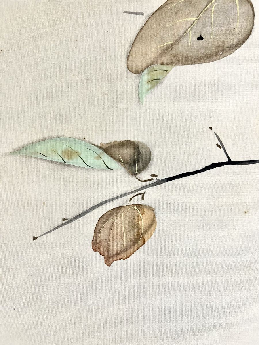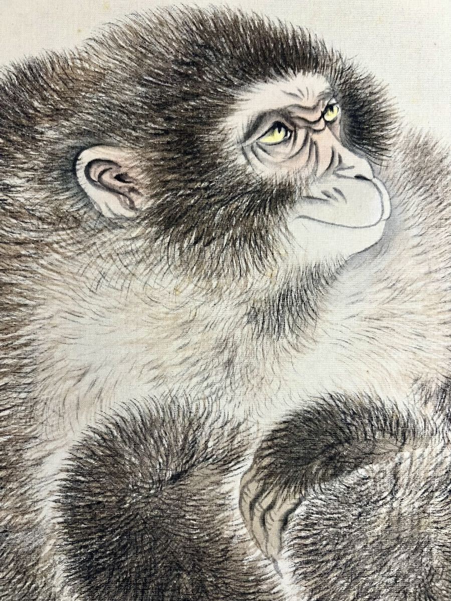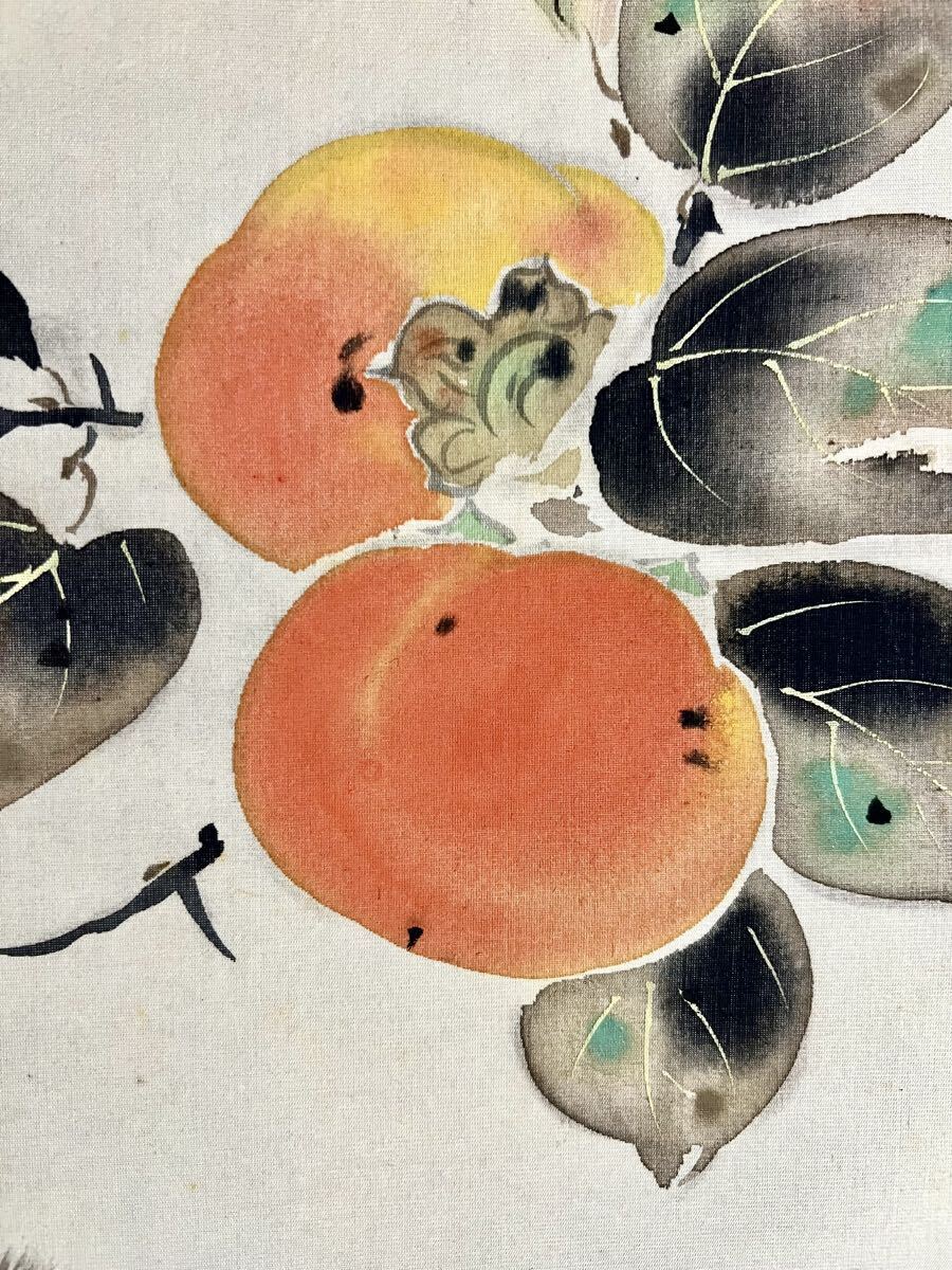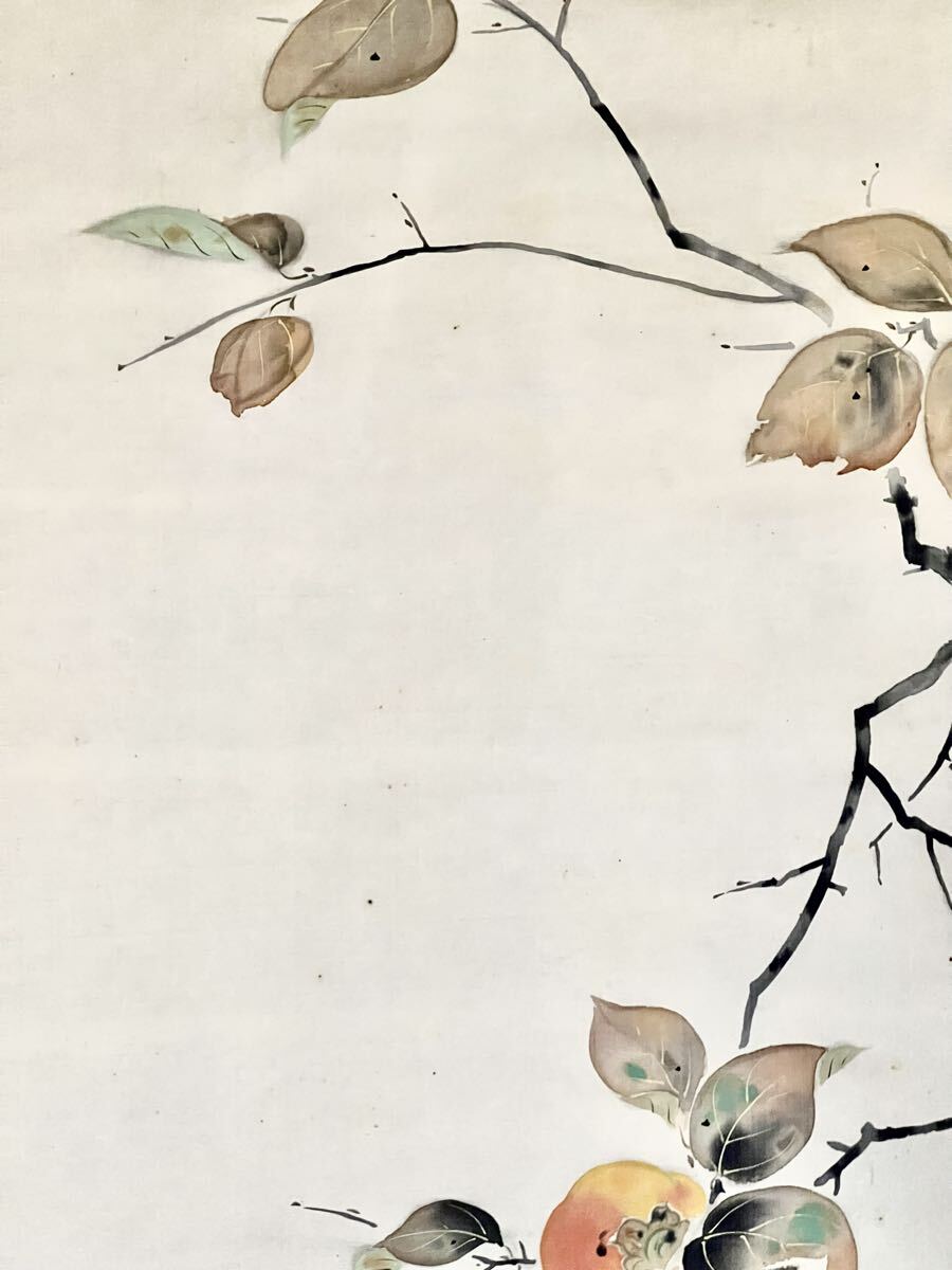 - 【模写】【S8】平田松堂「柿に猿」絹本 金泥 秋景 花鳥図 鳥獣 絵画 掛軸 明治-昭和時代の日本画家 東京の人 師: 川合玉堂