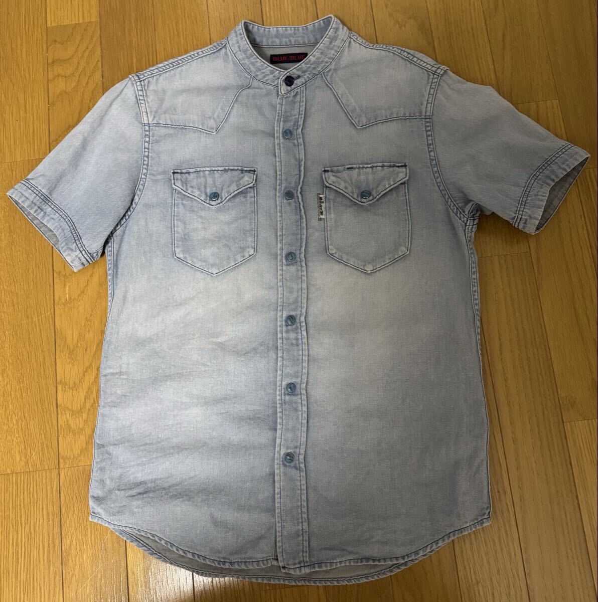 - BLUE BLUE ユーズドダメージ加工半袖デニムシャツ 1