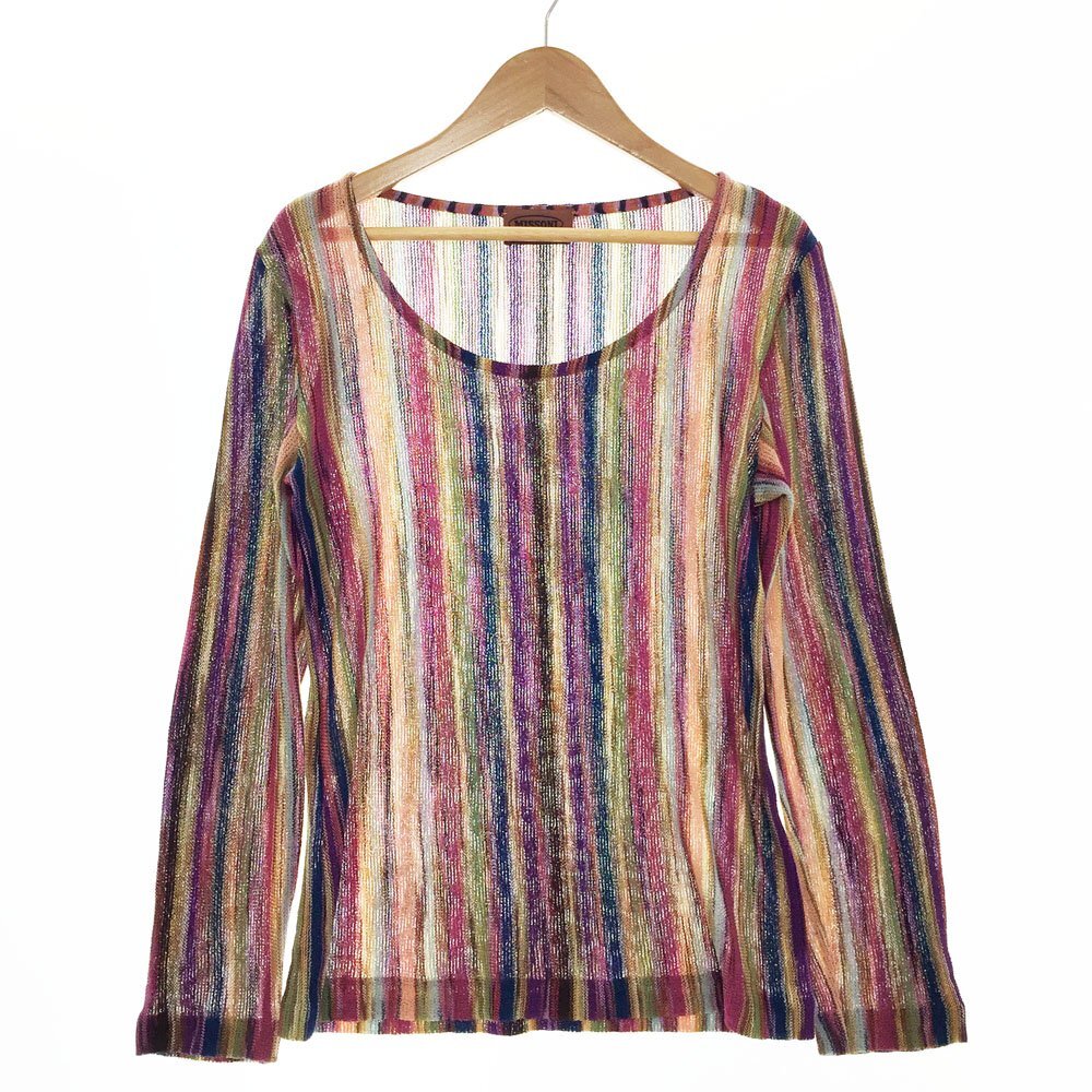> ★MISSONI ミッソーニ 長袖 マルチカラー クルーネックニット サイズ42 レディース ピンク×ブラウン×グリーン 国内正規品 1BA/93985