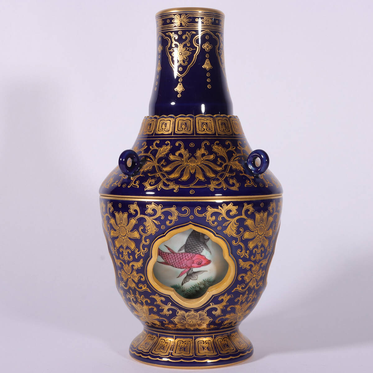 - ▽鴻▽清時代 陶磁器 粉彩祭藍描金転心瓶 清乾隆年製款 共箱 時代物 中国古美術 骨董品