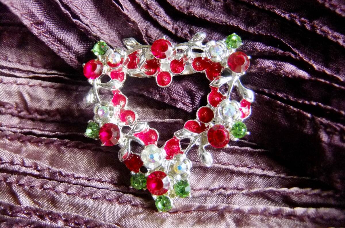 - 未使用品:3色カラーストーンのハート型リースブローチ B-6