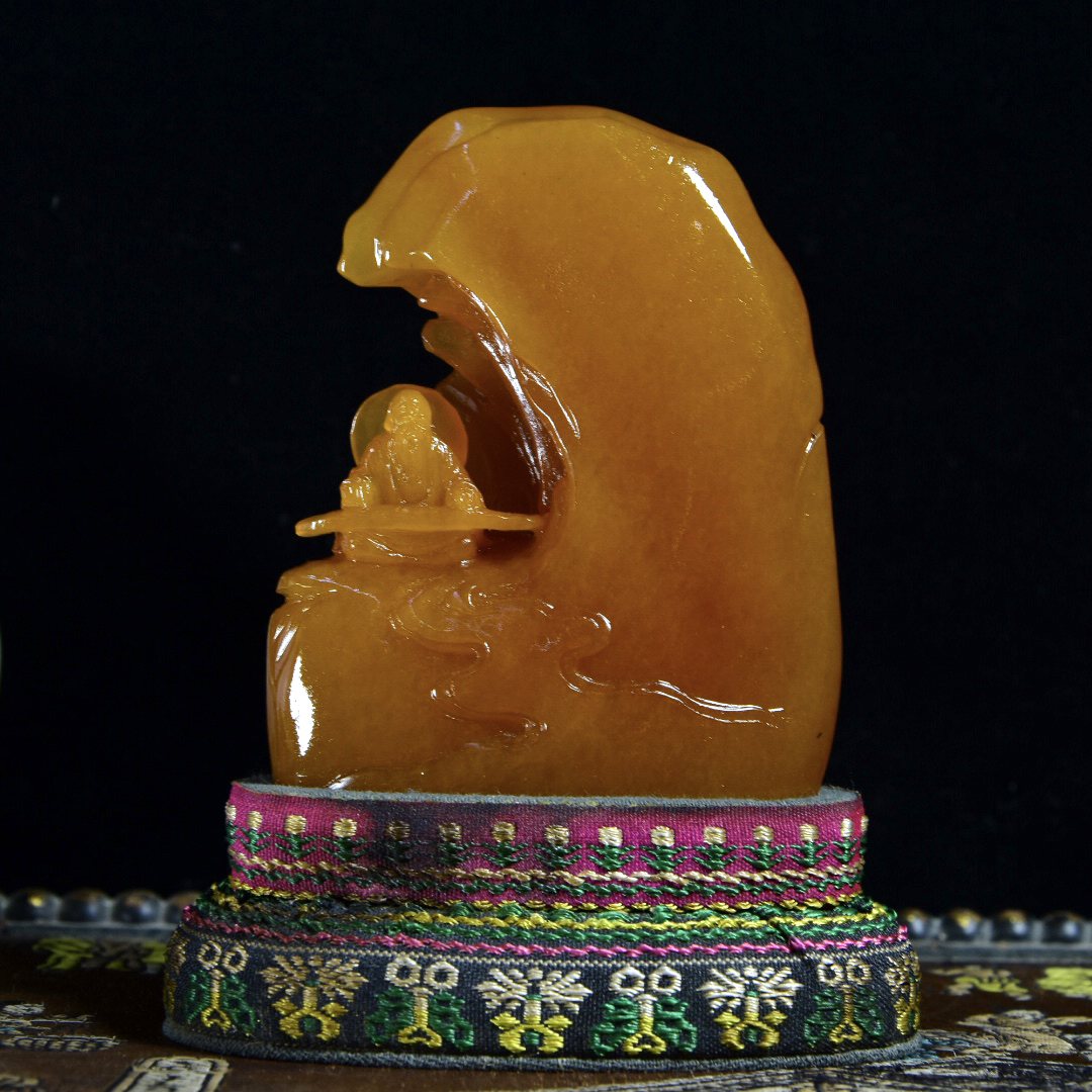 - ▽鴻▽清朝時代 寿山石 田黄石彫 知音図印章置物 乾隆二十五年御賞 箱付 時代物 中国古美術 骨董品
